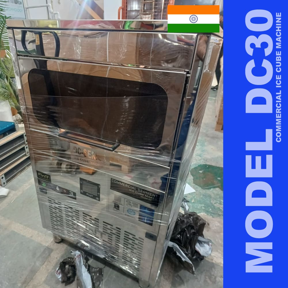 Our best selling model DCE30 30kg/day ice cube machine with solid dice shape cube it comes with fully automatic funcation it batch timming will be 16-18min on 36cubes each cube having 10gm of weight.
